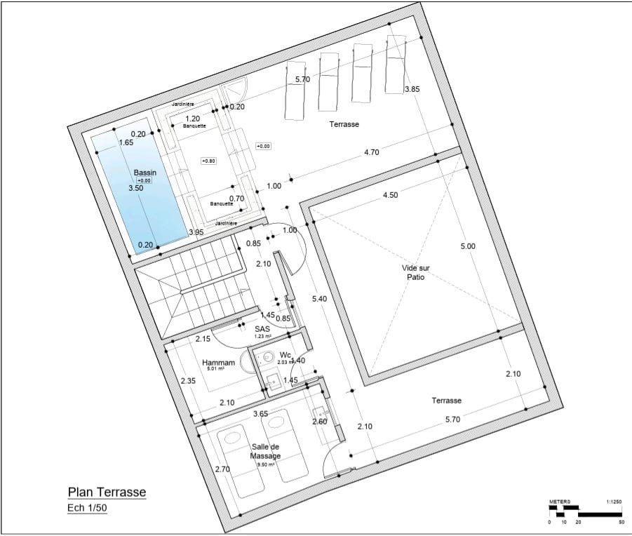 Le tout organisé autour d’un patio de 20 m²
