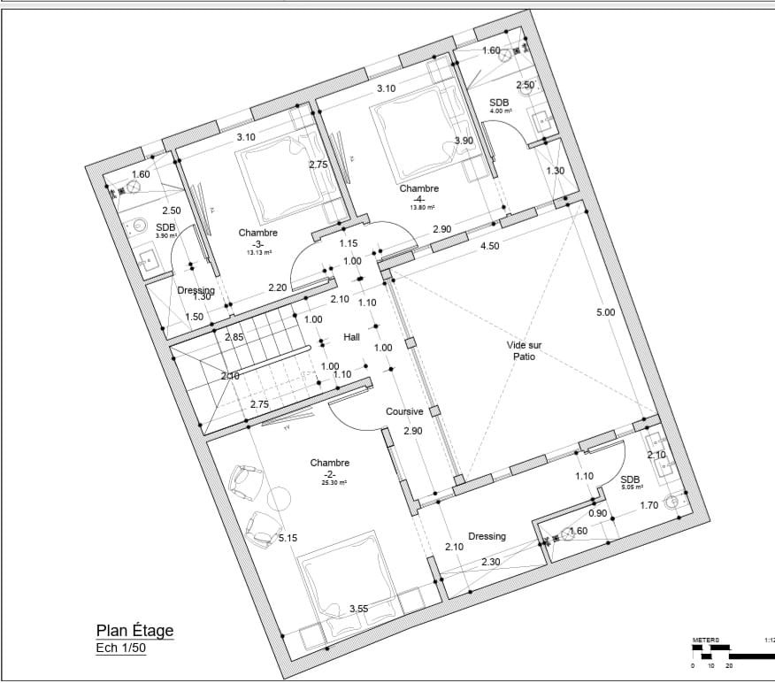3 belles suites avec dressing et salle d’eau, dont une master de 25 m²