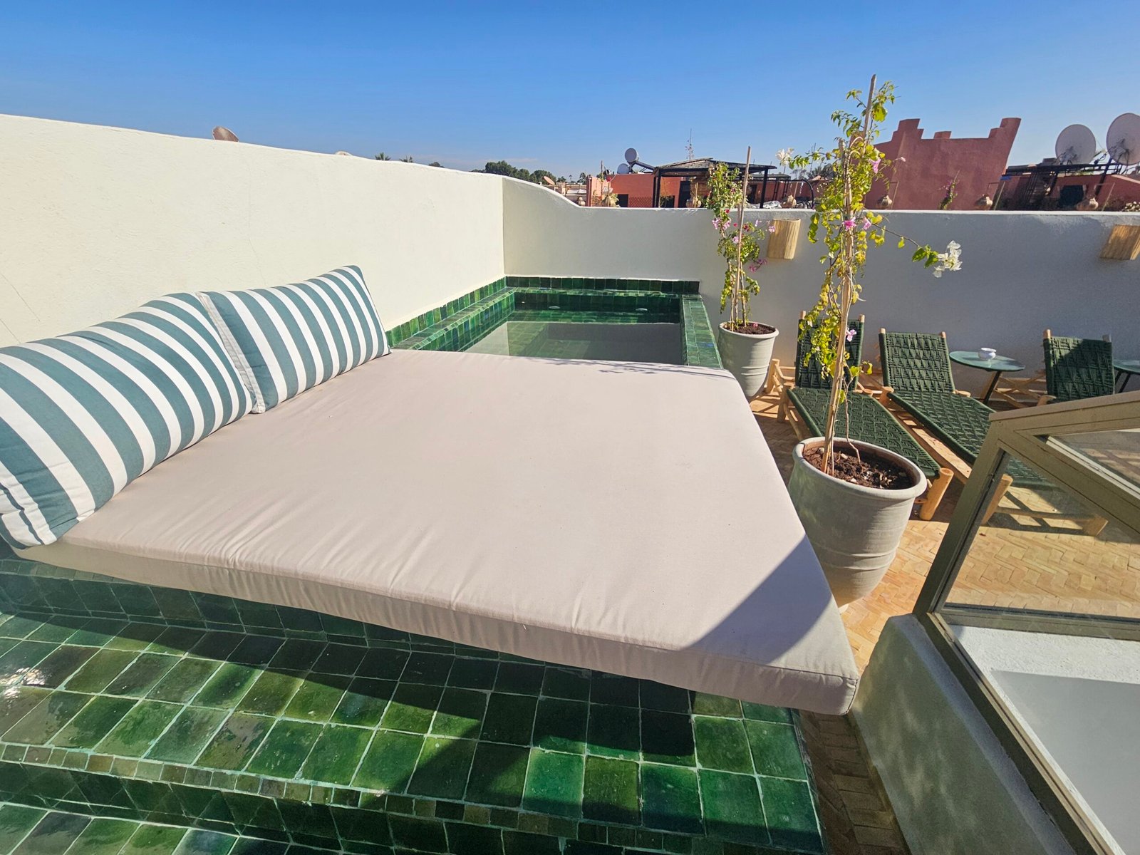 Nous vous proposons ce riad de 180 m2 habitables avec son roof top terrasse de 80 m2 sur une surface au sol de 91 m2 idéalement situé dans le quartier prisé de la Kasbah. Il disposera de 5 suites, d’un bassin sur le roof top. Les travaux sont presque finis.
