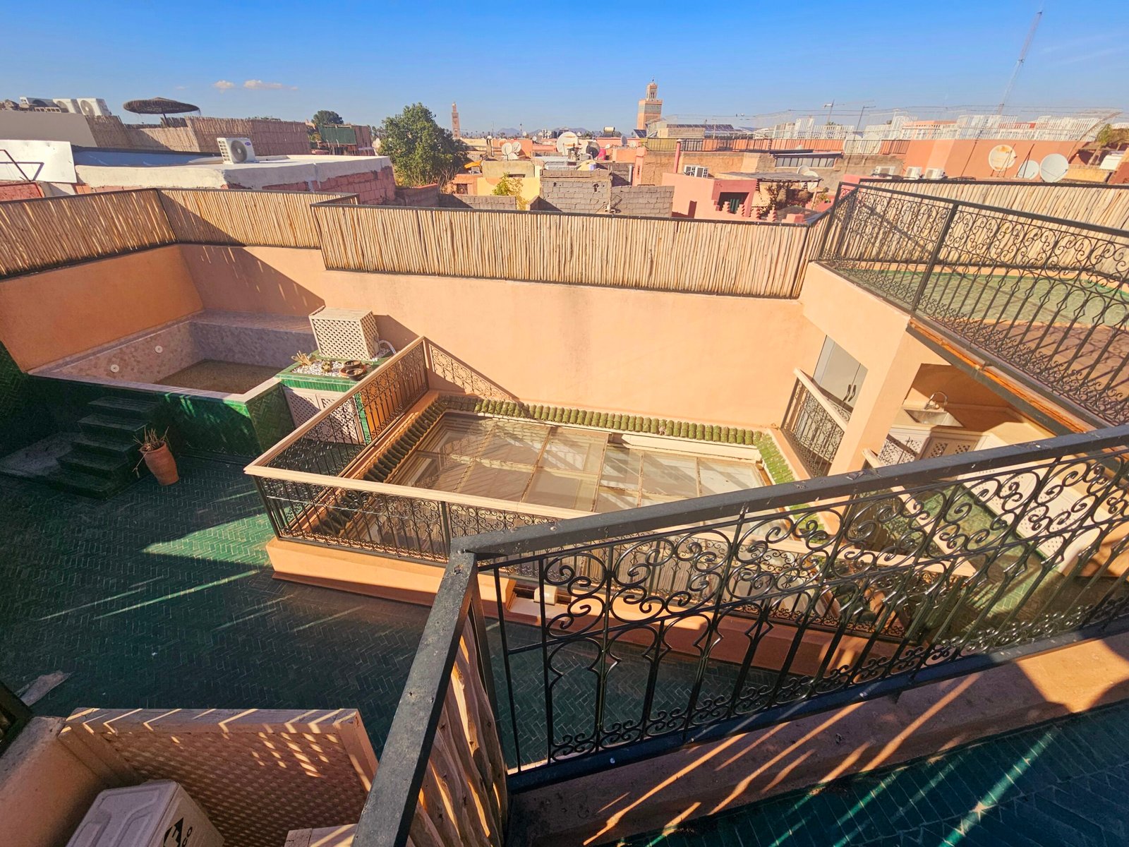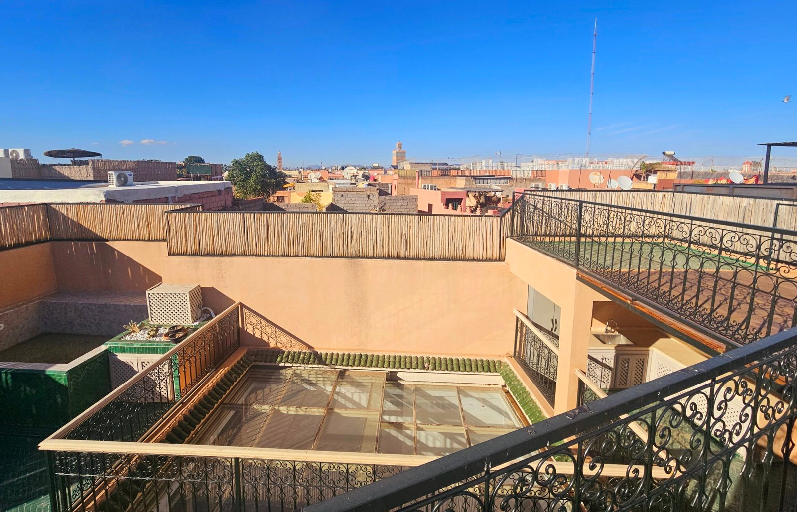 Il offre une vue panoramique à 360° exceptionnelle sur la Koutoubia, les Jbilates, l’Atlas, les Palais Royaux et Marrakech downtown.
