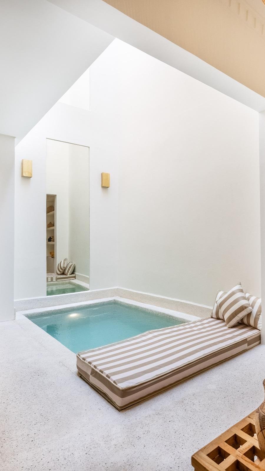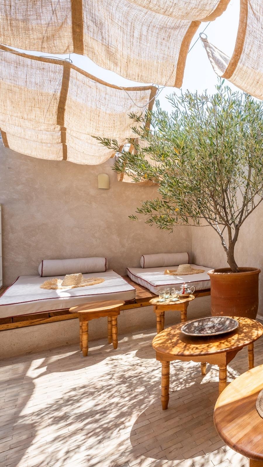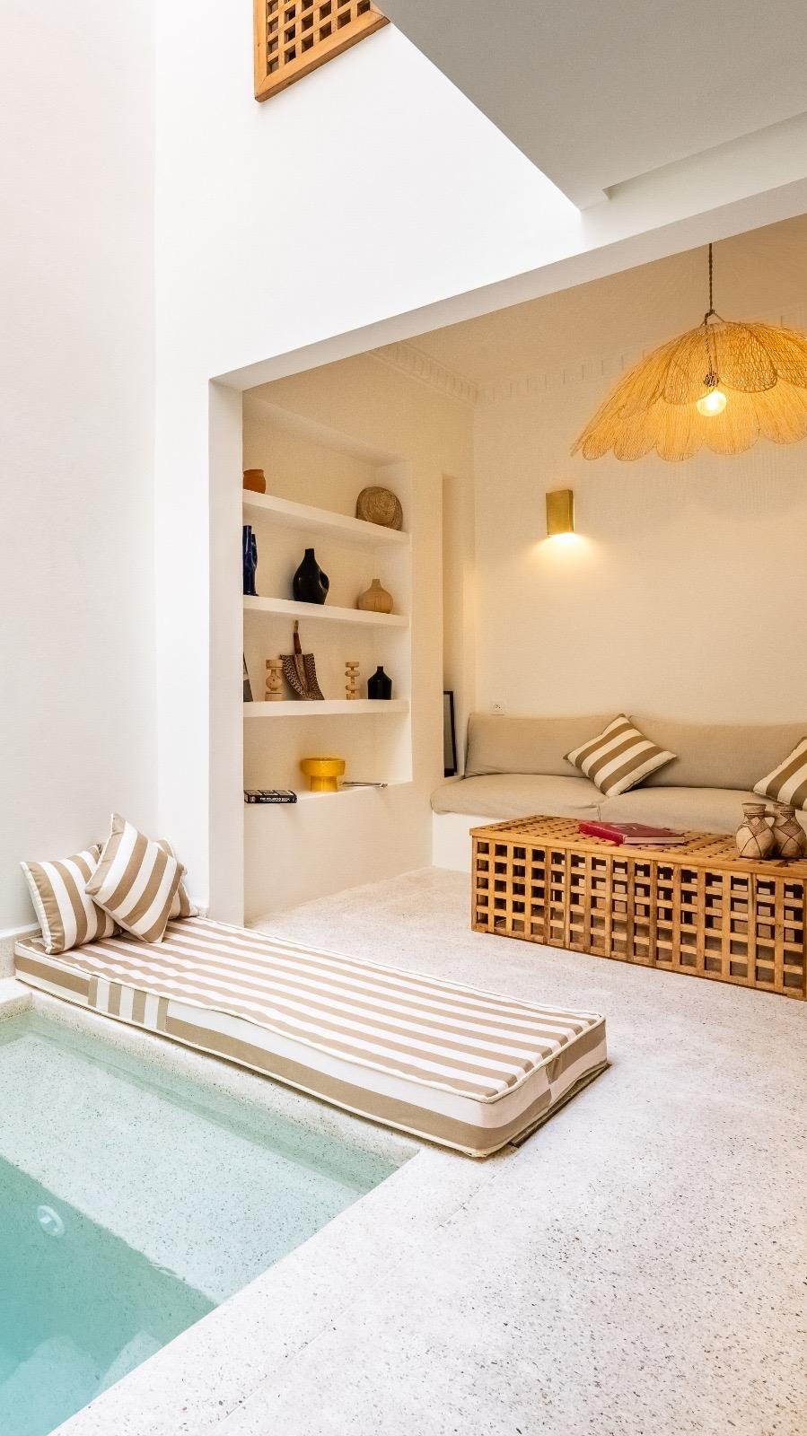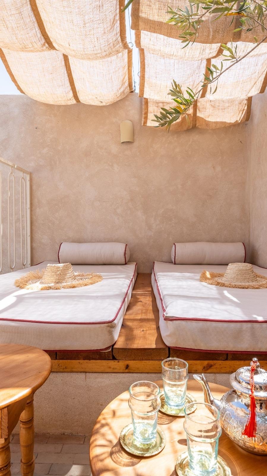 Au détour des ruelles paisibles de la Kasbah, ancien quartier royal de Marrakech, se cache un joyau discret : le Riad Maryam, un riad titré de 50 m² au sol et 100 m² habitables, pensé comme une véritable parenthèse de raffinement.