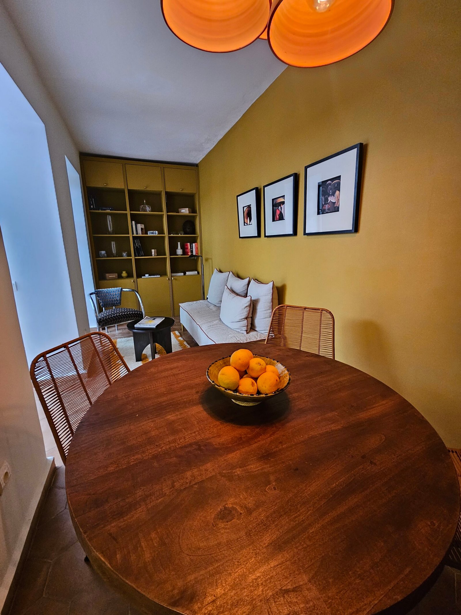Une salle à manger conviviale et un coin bibliothèque propice à la rêverie