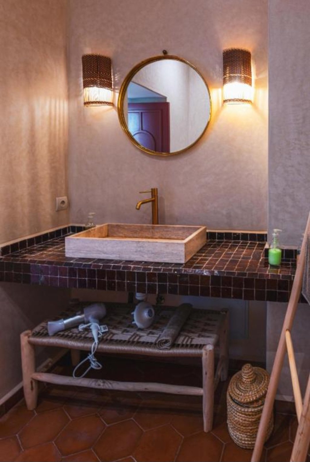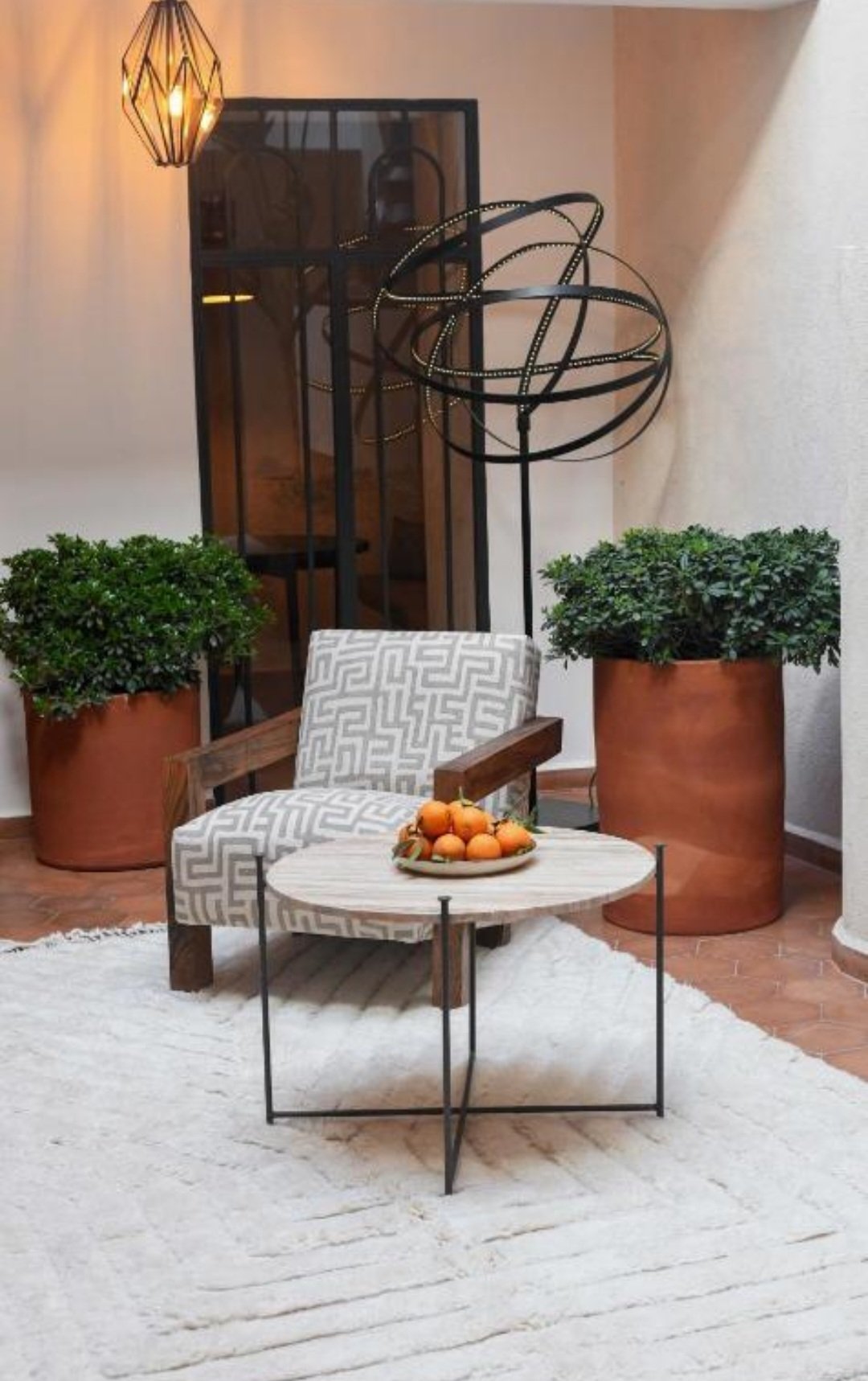 Chaque espace a été pensé avec soin, mariant matériaux nobles et lignes contemporaines, sublimés par l’œil d’un architecte d’intérieur qui a su transformer ce riad en une véritable œuvre de vie.