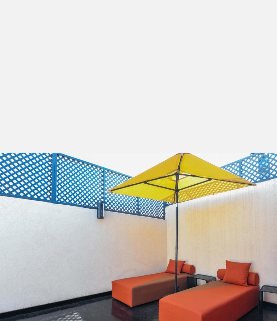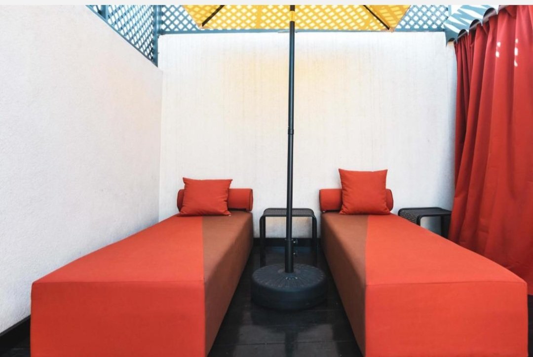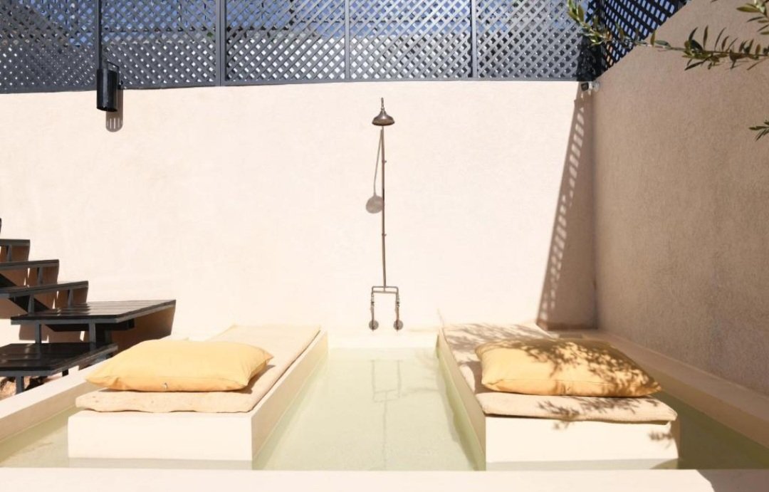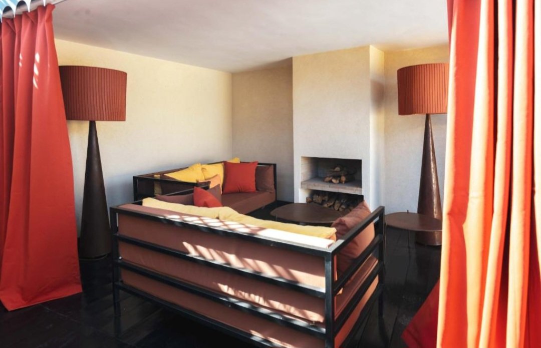 Un roof top aménagé en salon extérieur avec cheminée invite à partager des soirées étoilées. Plus loin, un bassin aux assises maçonnées offre une parenthèse de fraîcheur, tandis qu’un sur-roof top s’ouvre sur une vue à 360°, embrassant Marrakech et ses horizons infinis.