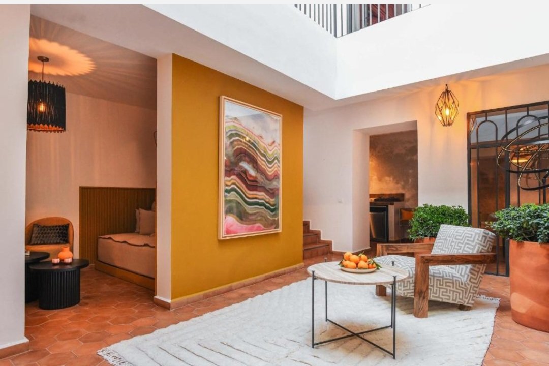 Au cœur de la Kasbah, l’un des quartiers les plus emblématiques et préservés de Marrakech, se cache un joyau rare : un riad titré de 92 m², entièrement réinventé en 2023.