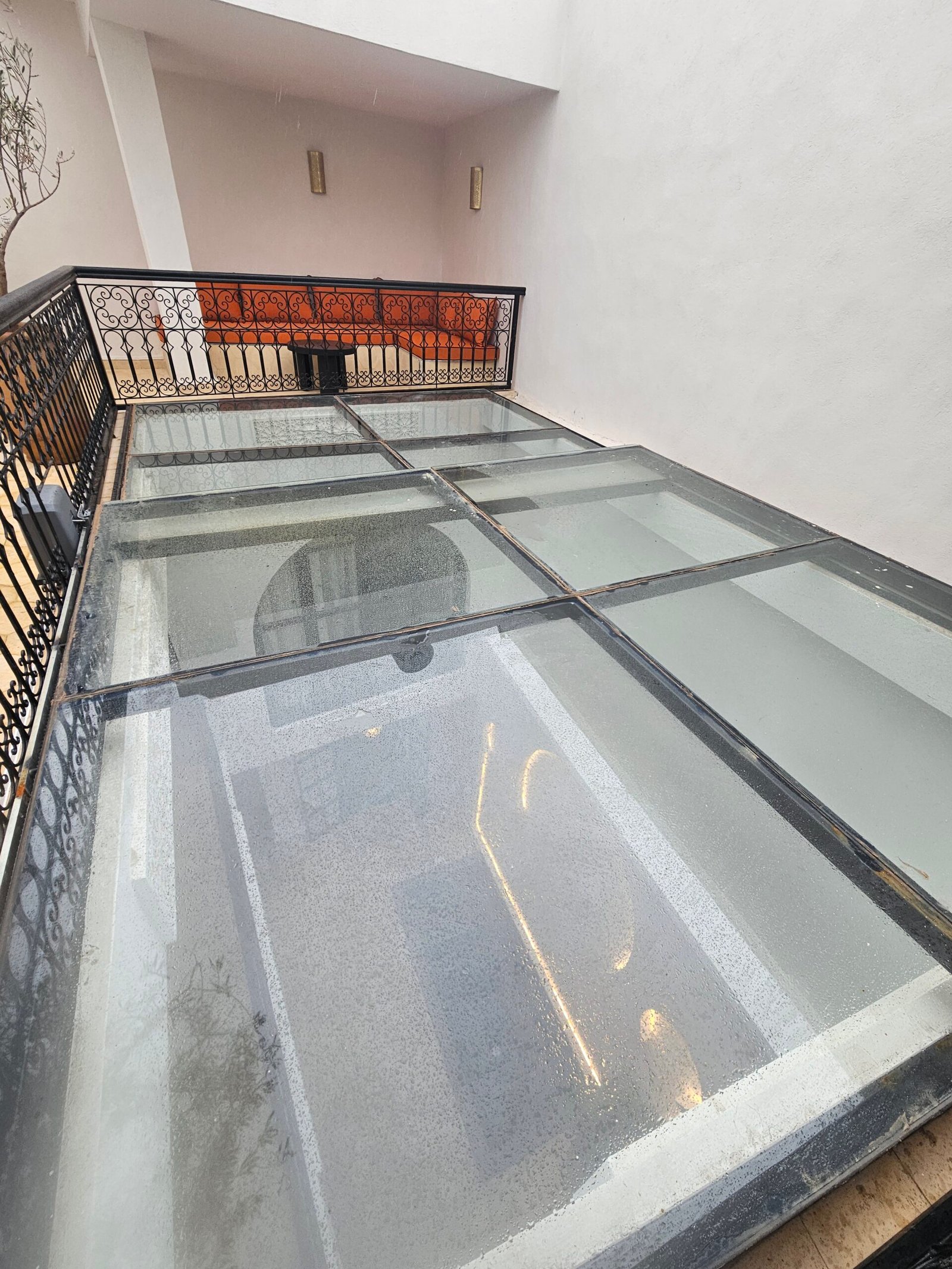 Un patio sous verrière, baigné de lumière